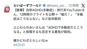 嫌儲 ADHDYouTuberが『嘘つき』『詐病』と叩かれてしまう…ADHD玄人モメンこれどう思う?🤔
