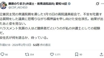 なんG 中道の候補者「選挙後から安住を見てない。ハラスメント気質の人ほど臆病者」