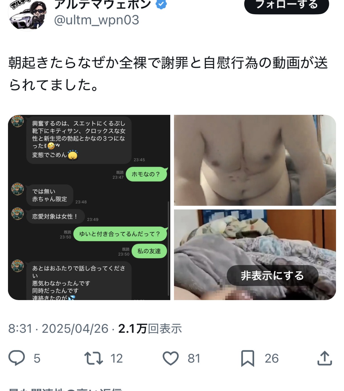それを公開するのってこれガチの犯罪じゃね - 24 : 2025/04/26(土) 10:34:22.90 ID:toXmgeRb0