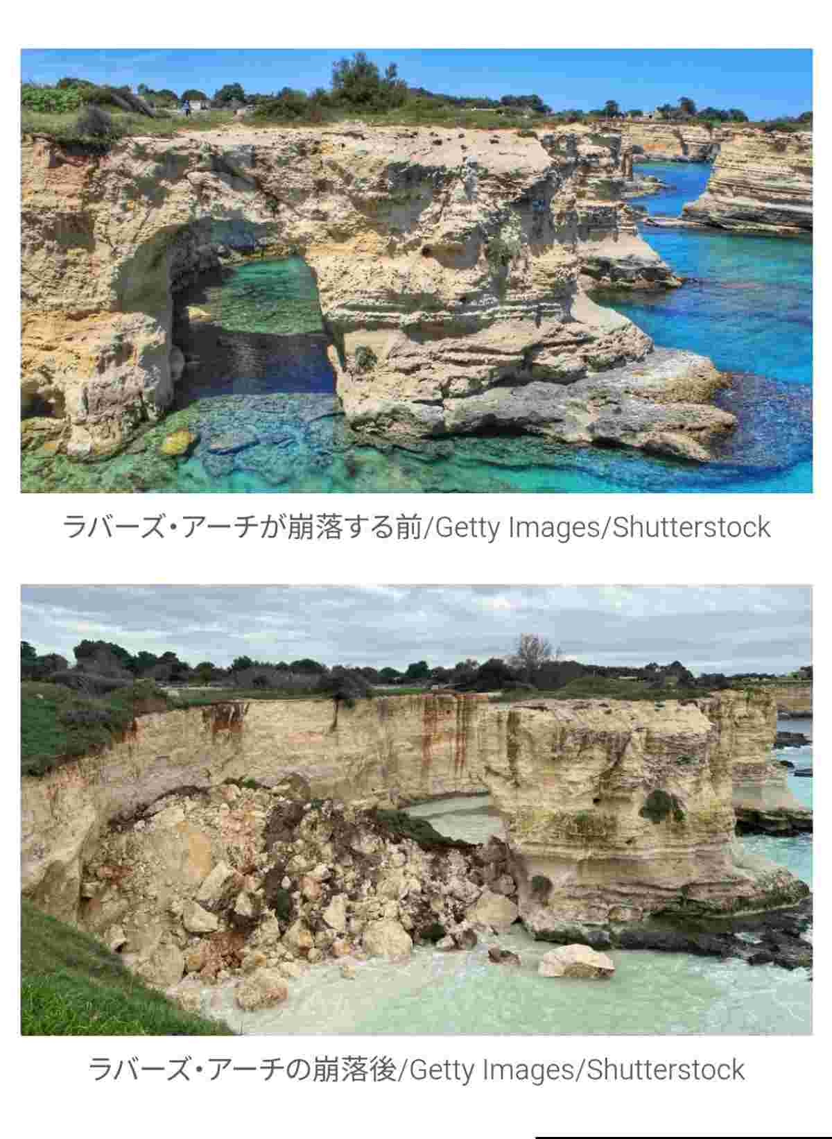 「このアーチの下でキスをしたカップルは永遠の愛で結ばれるの😍」のアーチが崩落して消え去る