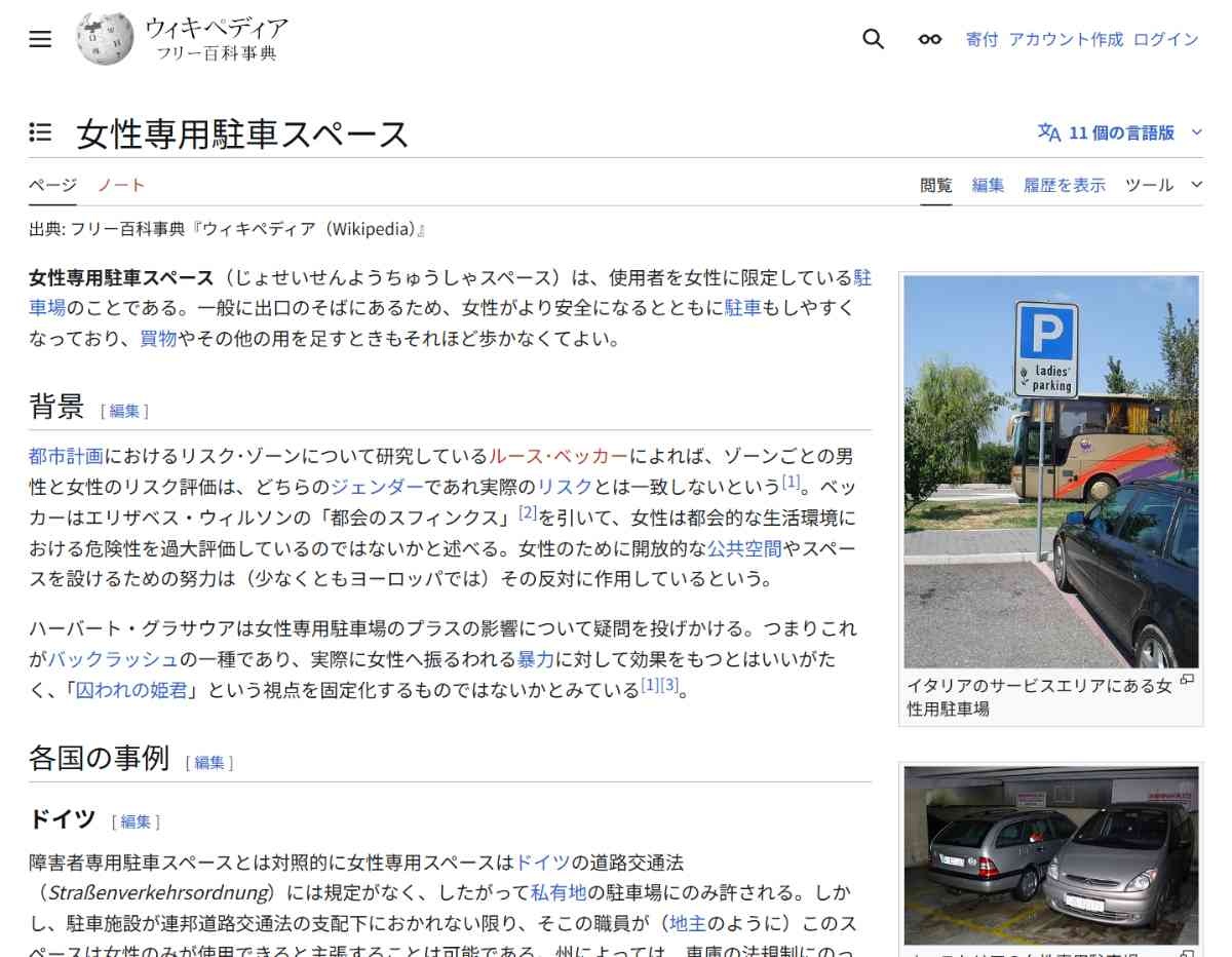 女性専用駐車場は、安全確保や利便性向上を目的とした取り組みである。一方で、社会の中では議論が絶えない問題も存在する。https://www.j-cast.com/2022/02/02430053.html?p=all