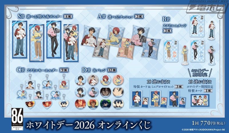 KADOKAWAが運営するオンラインくじサービス「くじ引き堂」に、TVアニメ『86―エイティシックス―』のオリジナル商品が手に入る『TVアニメ 「86―エイティシックス―」ホワイトデー2026 オンラインくじ』が登場! 2026年3月12日(木)12時より販売開始です。
