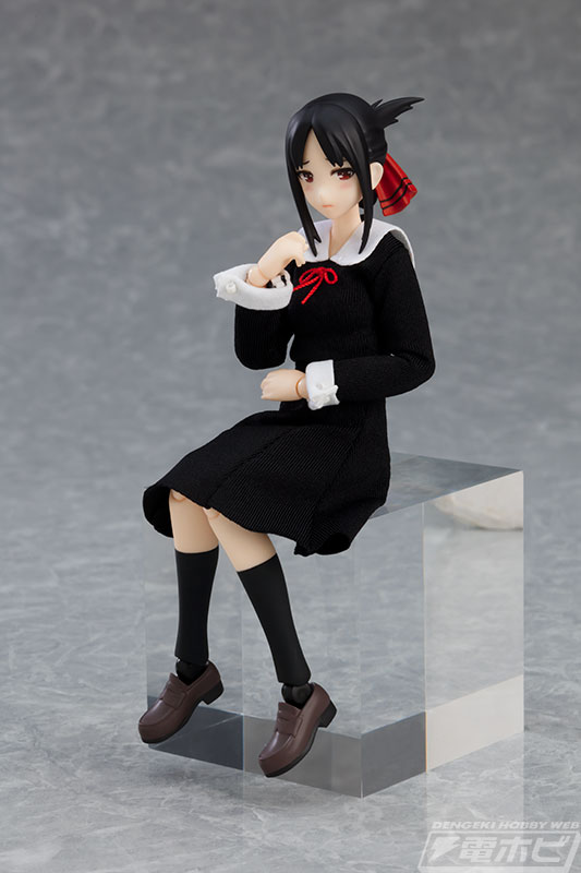 figma 四宮かぐや秀知院学園生徒会副会長「四宮かぐや」が制服姿で登場。制服は着脱可能な布製で、軽やかなシルエットと可動域が確保されています。表情は「すまし顔」、「蔑み顔」、「照れ顔」、「動揺顔」の4種が付属。