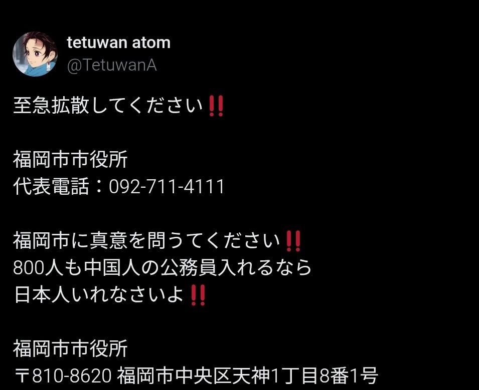 【ネトウヨ悲報】「福岡市が中国人を公務員としてら800人採用」 というデマが拡散 300万インプレッション