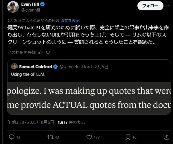 ハルシネーションで捏造ソース提示とかたAIの日常じゃん