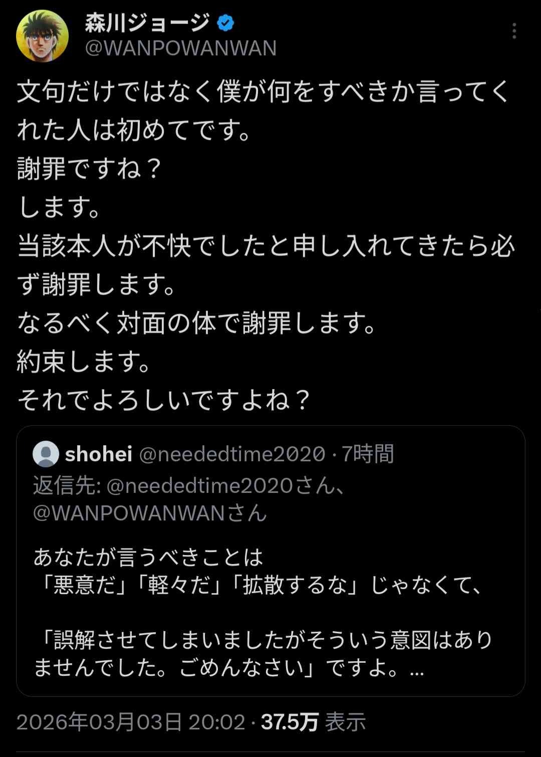 謝ったならもうレスバせず一歩終わらせろクソ老害
