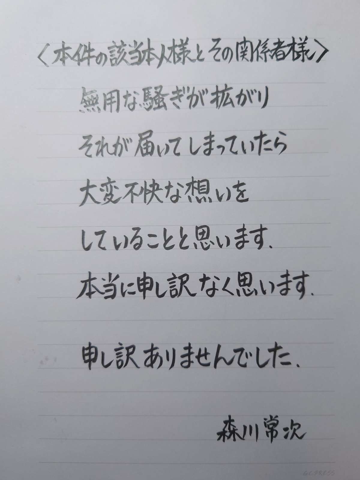何に対する謝罪なのか明記してないから
