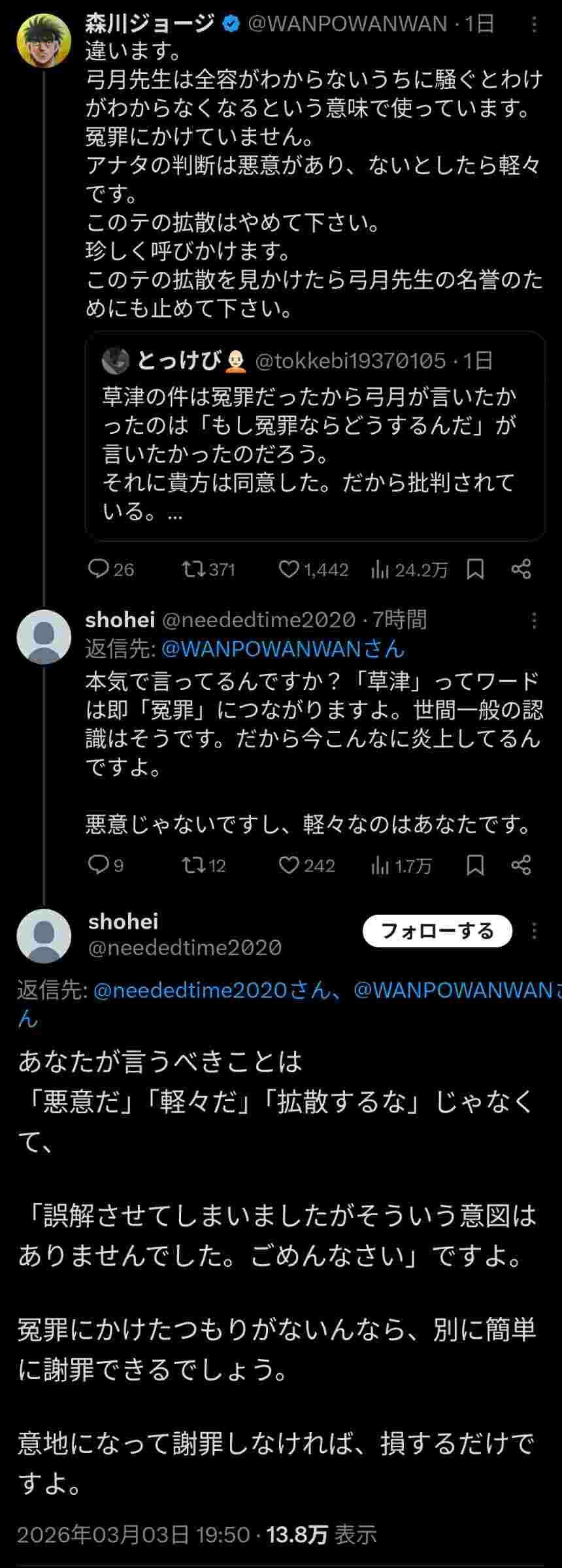 裁判で犯罪が確定してる事案に対して草津呼ばわりするのはシンプルに気が狂ってると思ったな
