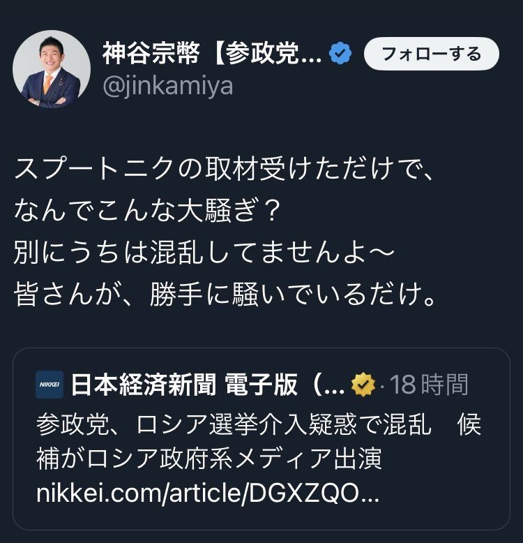 これ共産党がスプートニクの取材受けてたら大騒ぎで騒いでるんじゃねーの?