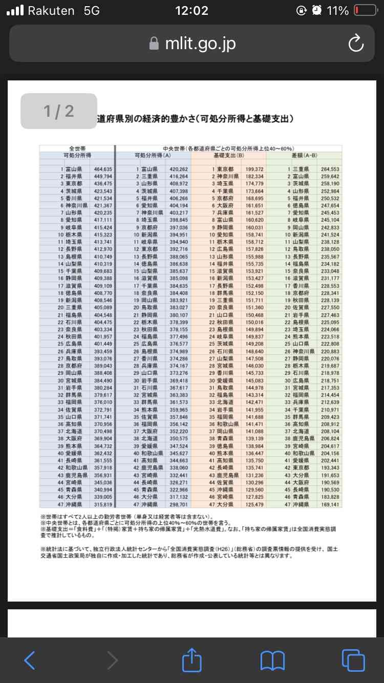 可処分所得高さランキング