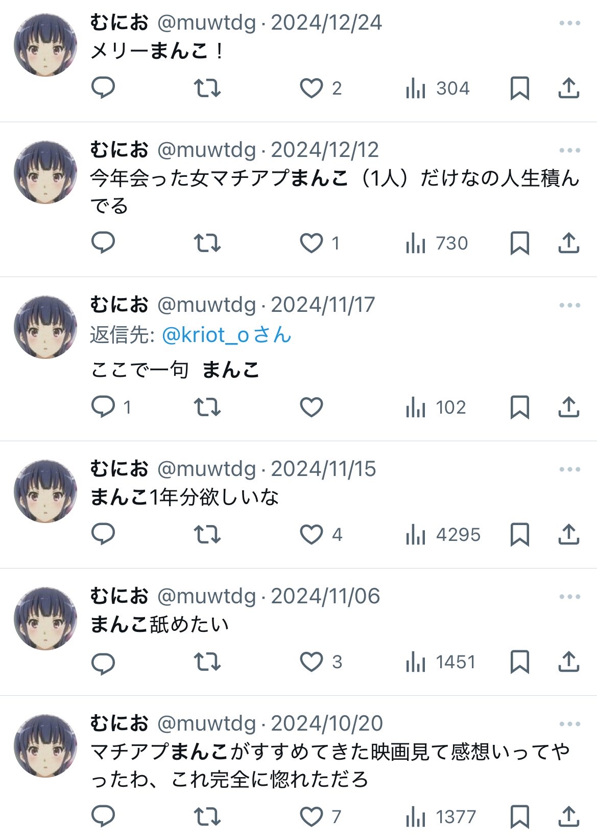 これからリアルで会う人をま●こ呼びの時点で人格破綻者だと分かる