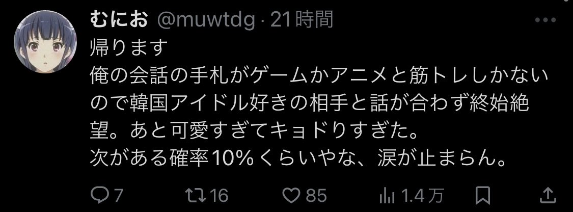 ゲームアニメ筋トレしか話せないって絵に描いたチーズが実在するんだな