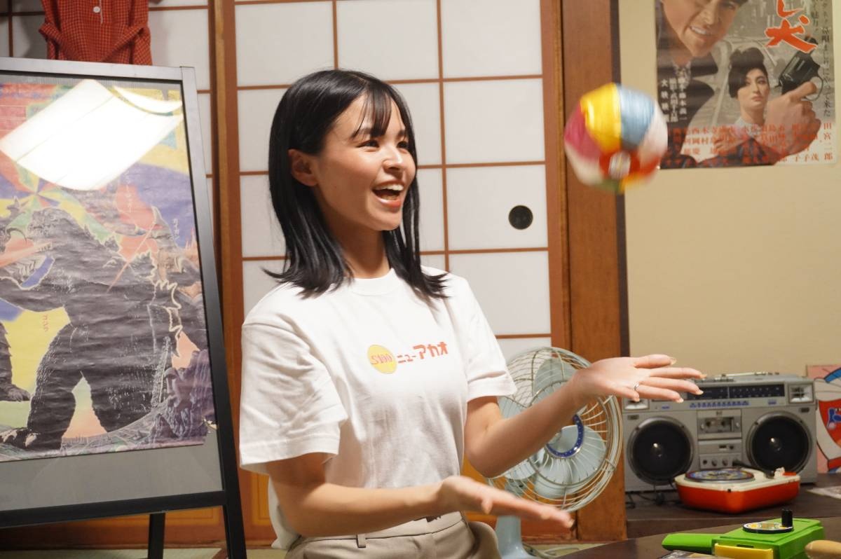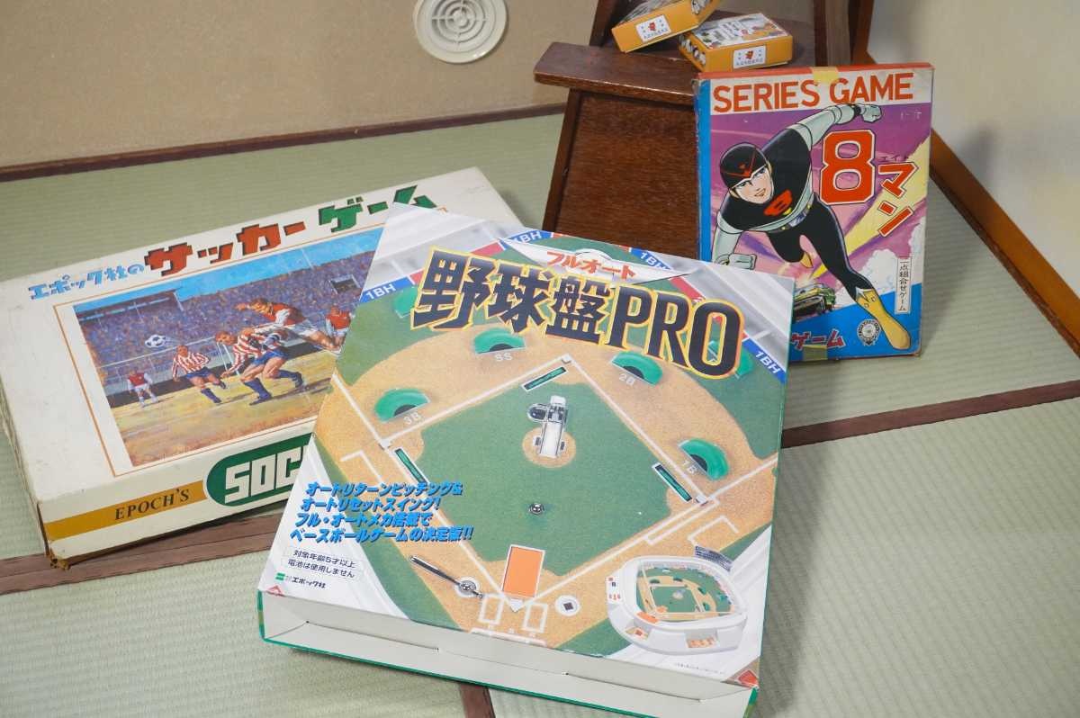 集められたアイテムはおよそ150。畳敷き12畳の空間には、ビデオデッキやラジオ、ブラウン管テレビ、レコードプレイヤーなどの昭和家電に、ちゃぶ台やたんすといった味わい深い家具、懐かしいフィギュアにファミコン、ボードゲーム、けん玉まで揃う。