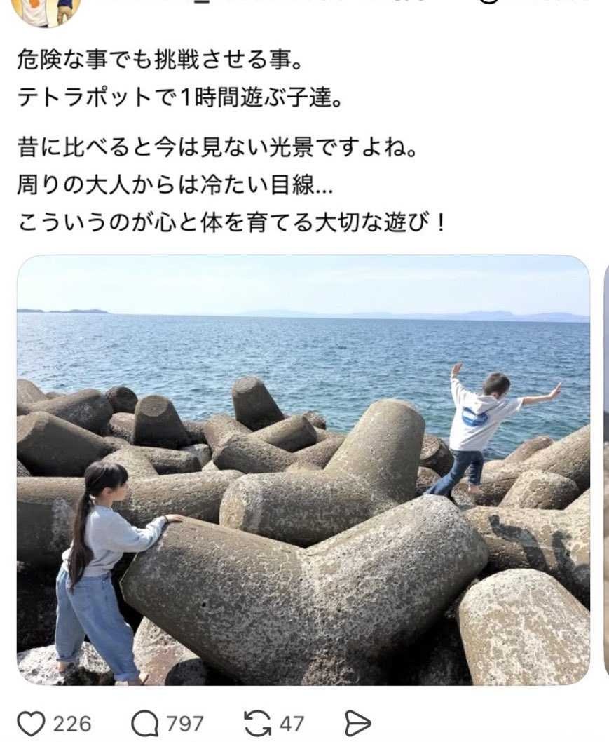 親なら手に持ってるスマホで「テトラポット 危険?」ぐらい調べろよ