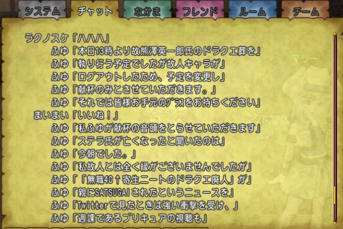 これからは息子の弔いも兼ねてドラクエのキャラ継承してプレイするんかな