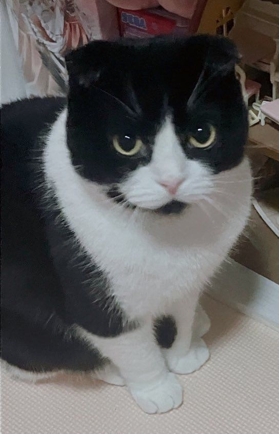首元の黒がお口の下からチラ見えしてるのが良いアクセントで可愛い