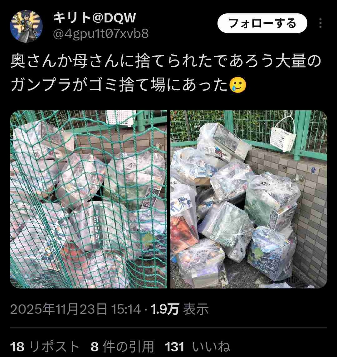 中身有りならガンプラボッタ値のブックオフにでも売れば良かったのにな