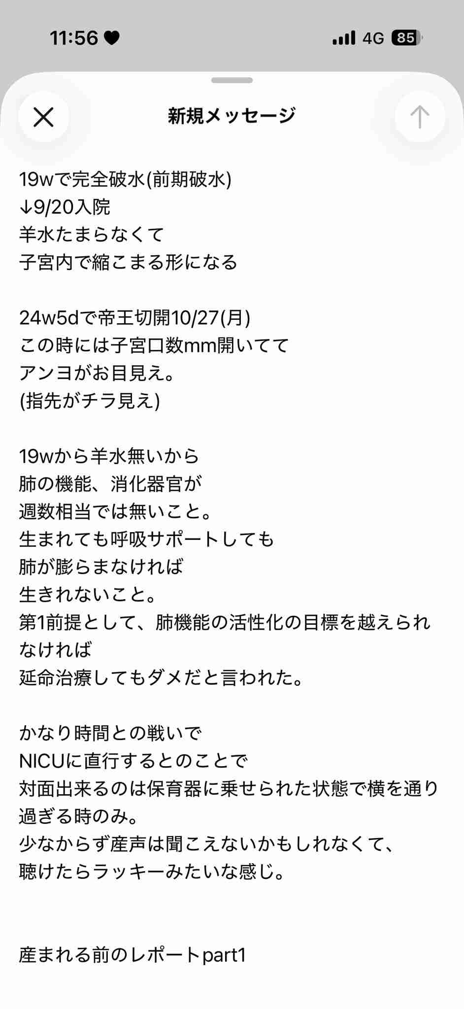 妊娠19週目で羊膜が破れて羊水がなくなり、赤ちゃんが正常に発育しなくなり