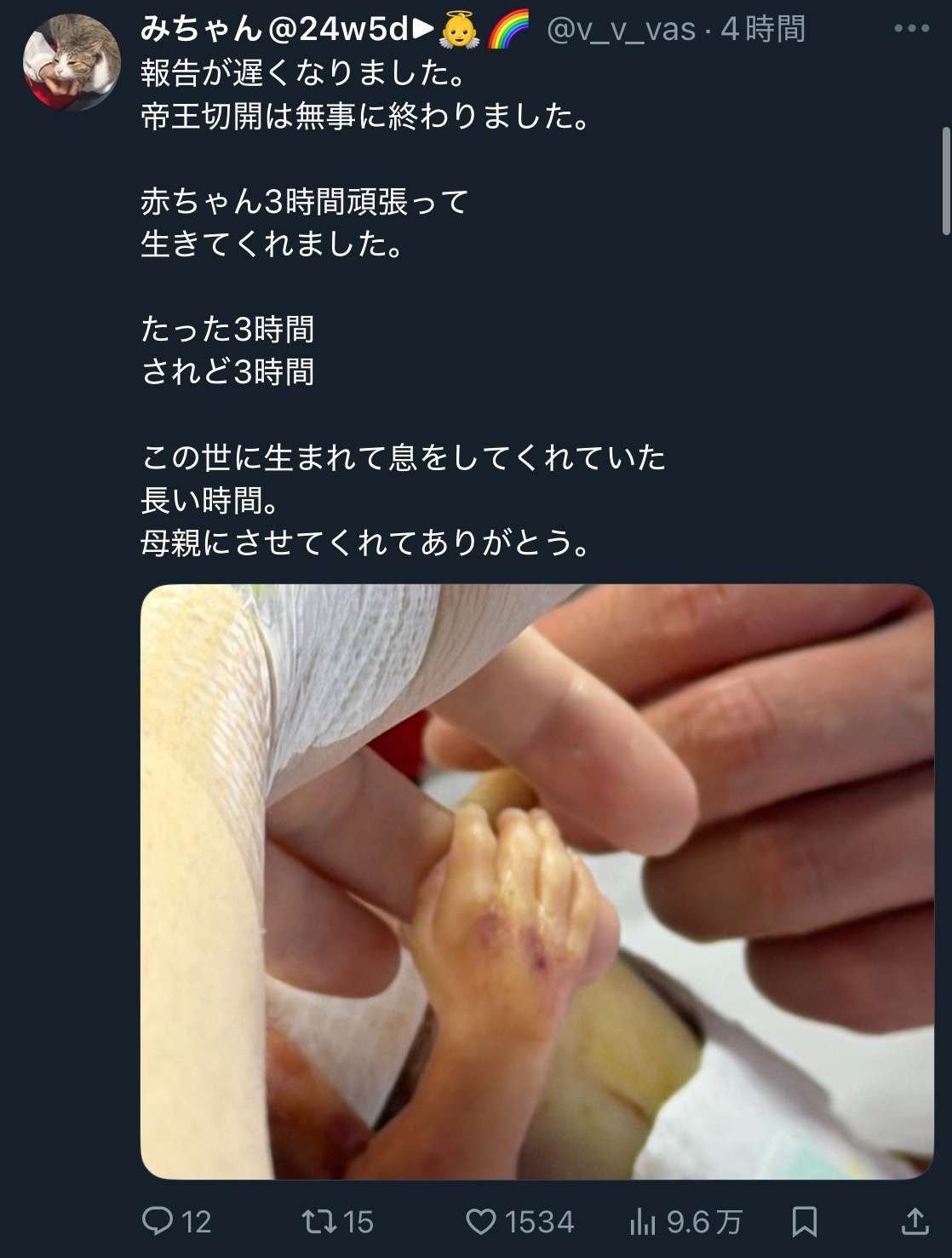 産んですぐに処置すればなんとかなりそうという見込みだったが助からなかったらしい