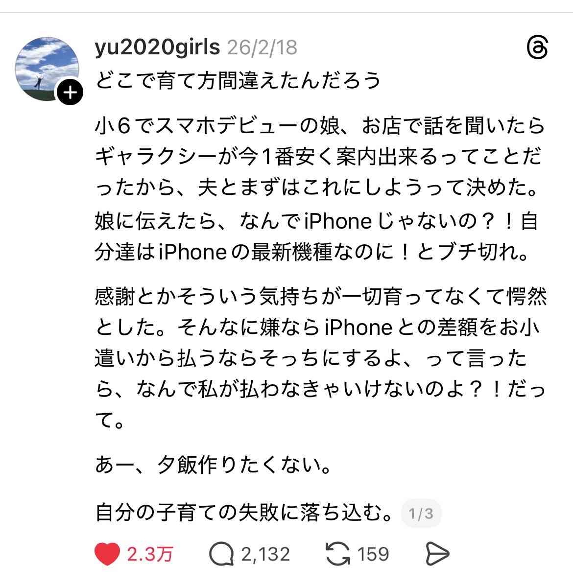 iPhone与えないとiPhone買うためにパパ活するぞ