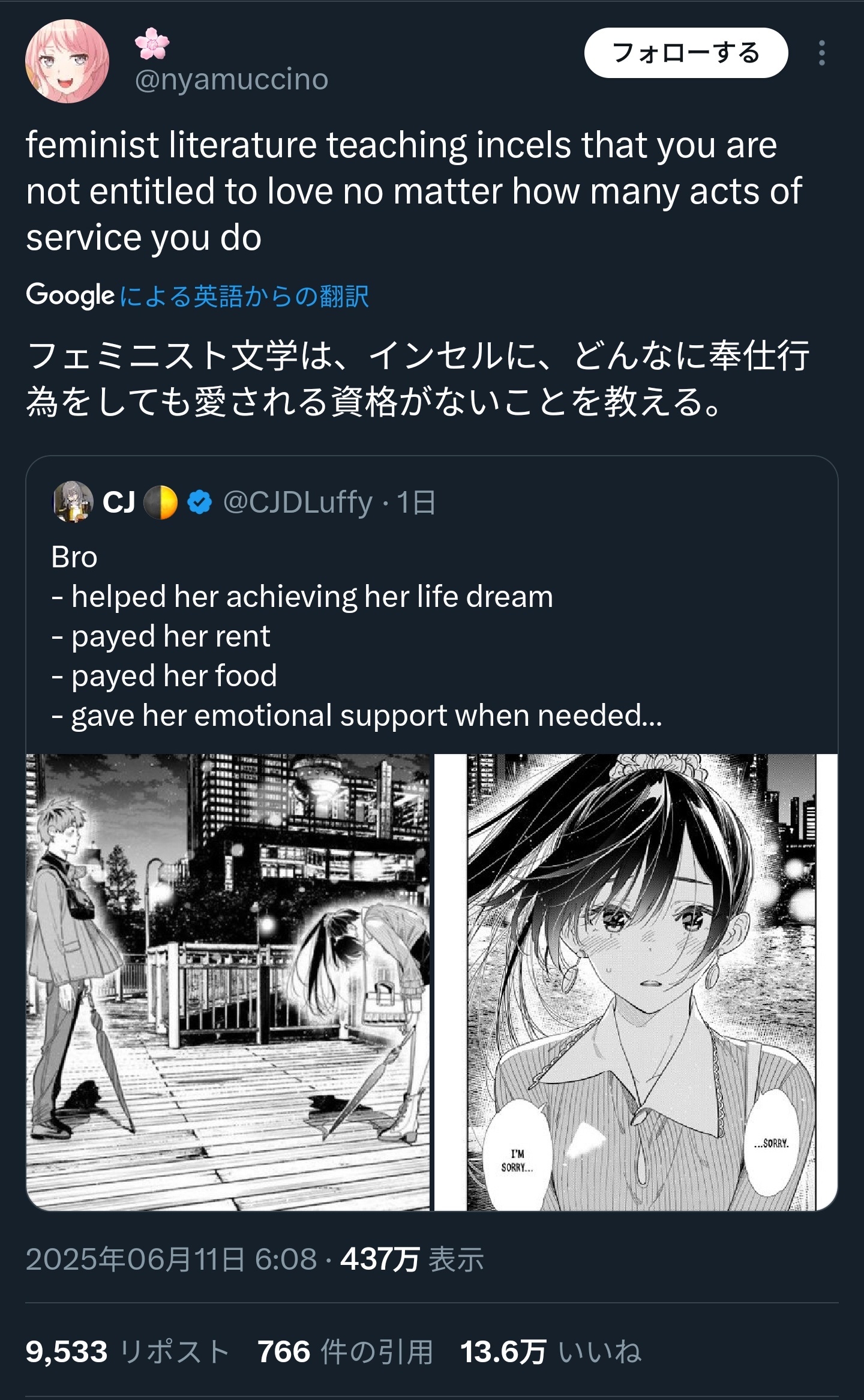 弱男が女に尽くしてもセクロスにありつけなのをフィクションやる必要ある?現実だけでお腹いっぱいやわ