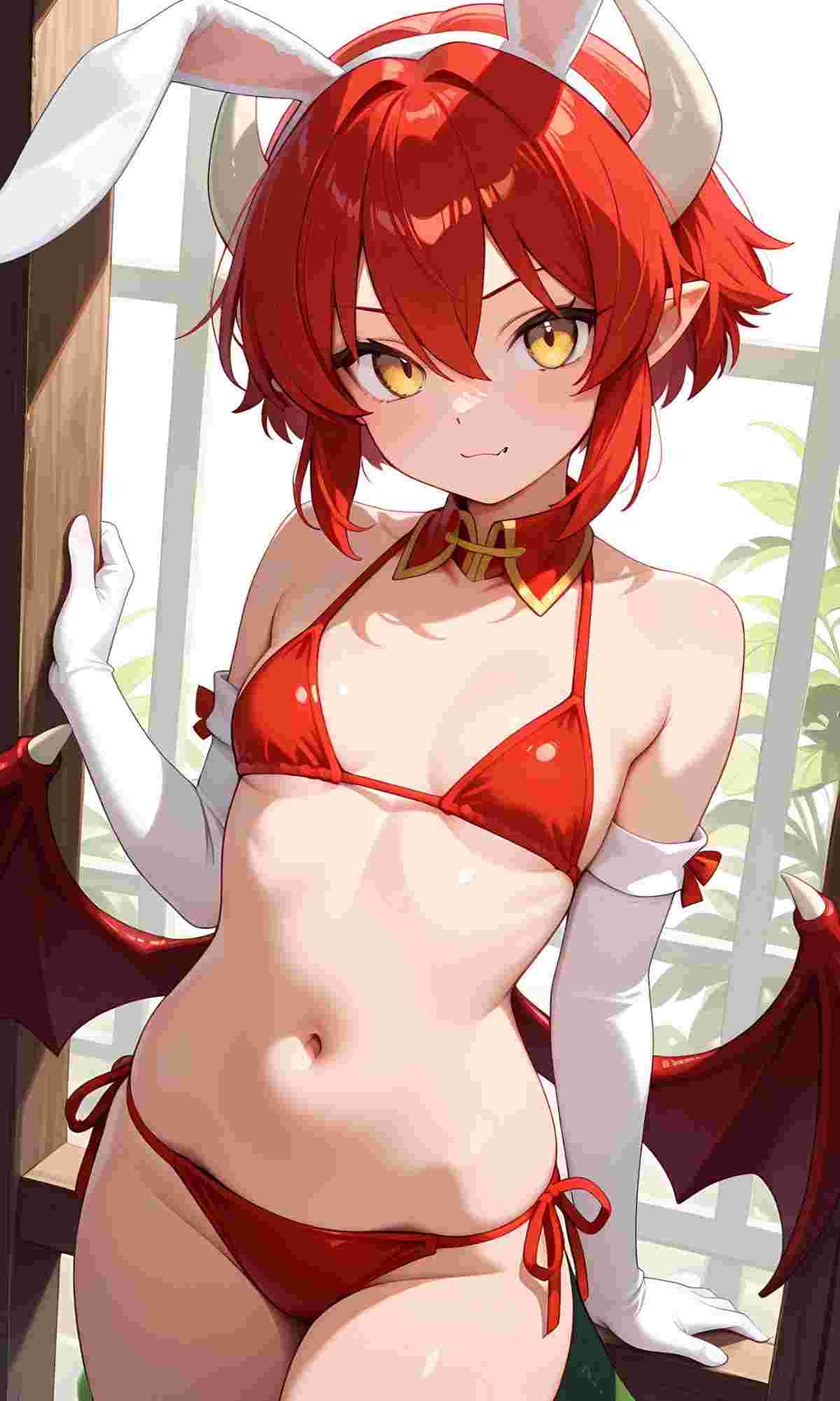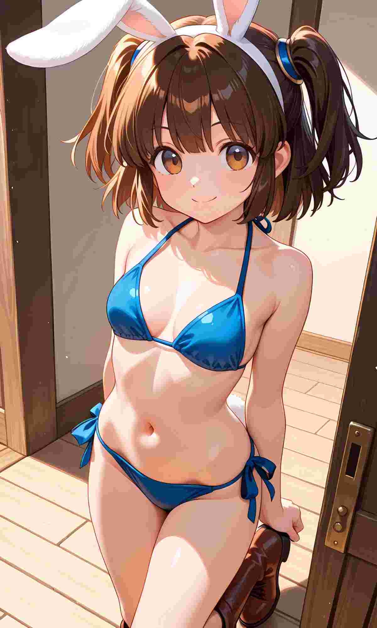 ※AIイラスト、全裸バージョン、マン毛ありバージョン。おぱーいとおへそが素晴らしい!