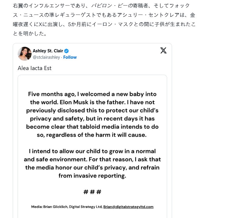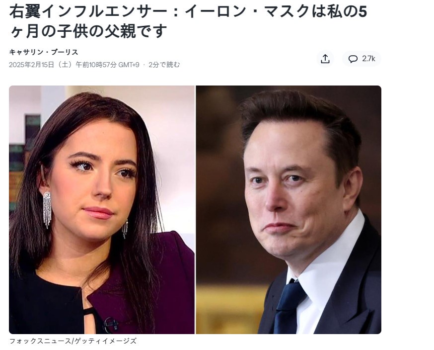 イーロンだとなんかヤバい思想に従って子供産ませまくってる感あるよな