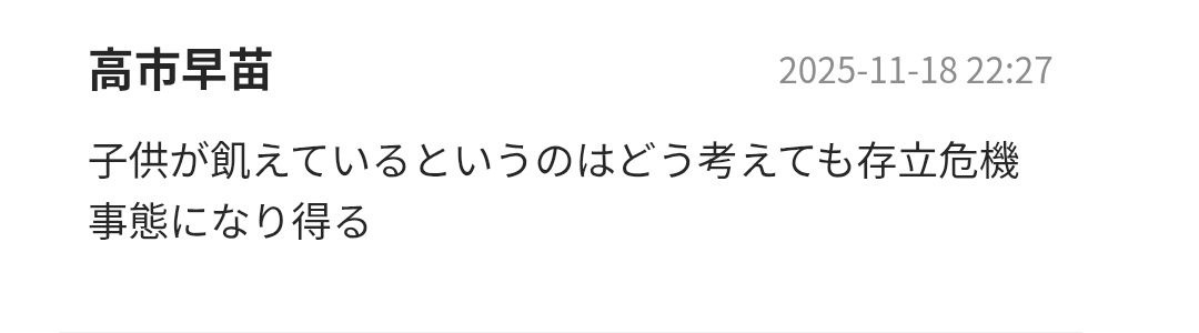 たしかに・・・子供が飢えるのは日本国の存立危機事態だな