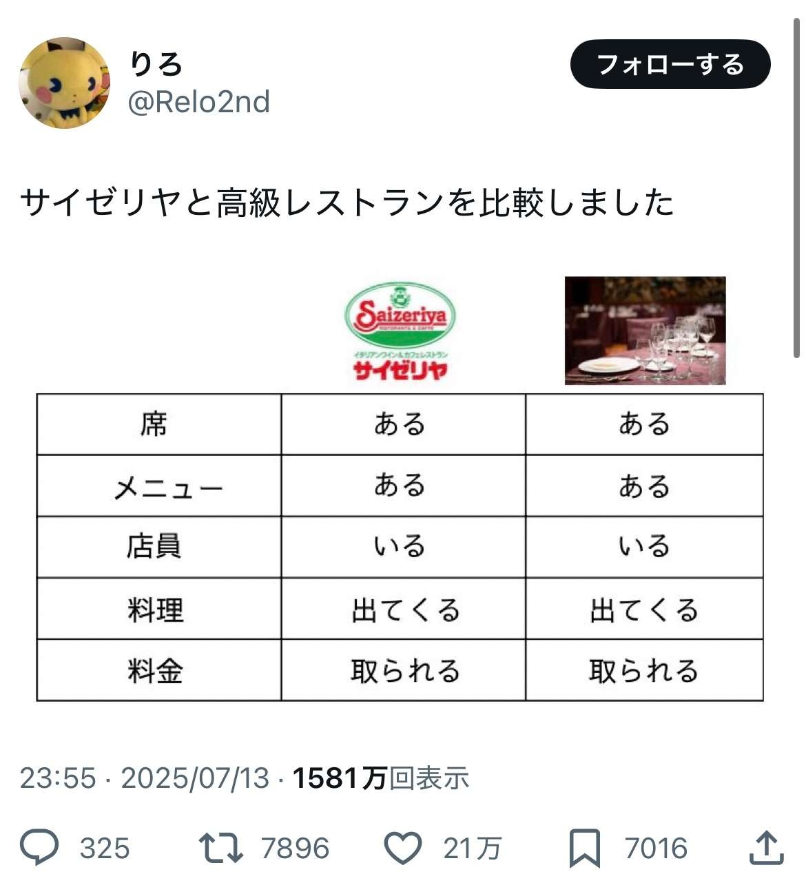 これで「高級レストランなんて行く必要ないんだよ」ってなるの?