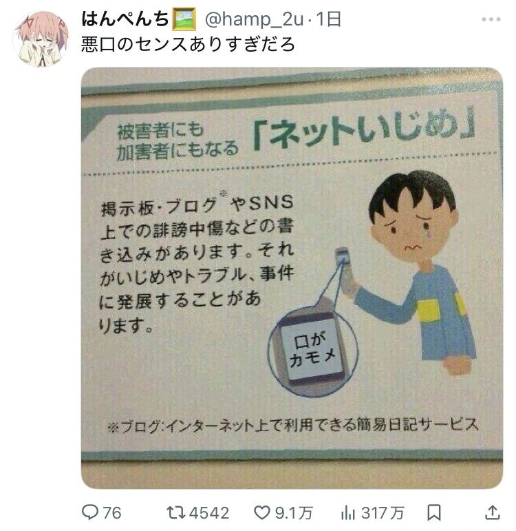 わざわざ 口がかもめのキャラ作って口がカモメって悪口言ってるんだから なかなか 闇深いよな