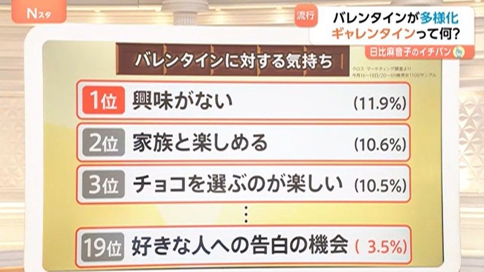 1959年に広告のキャッチコピーから始まった「バレンタインに告白の意味でチョコを贈る」という文化はほぼ完全に廃れてきてるようでチョコ会社涙目。