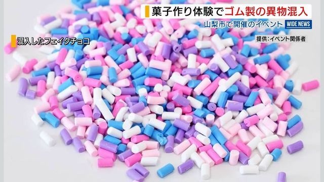 山梨市で開かれた子ども向けイベントのドーナツ作り体験コーナーで、トッピング用のチョコの中にゴム製のチョコの模型が混入していたことが26日、分かりました。