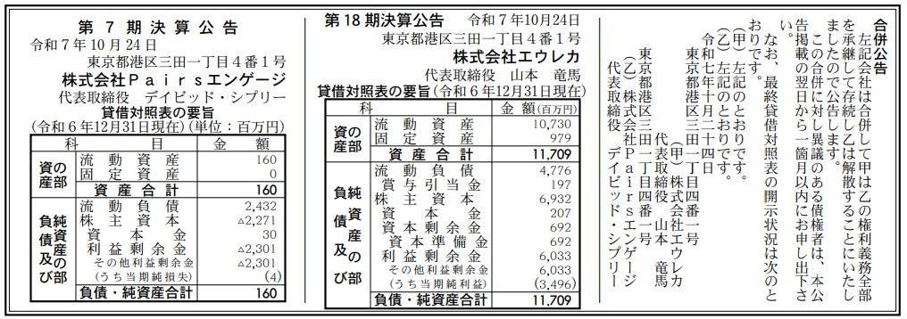 マッチングアプリ「Pairs」のエウレカ、2024年12月期決算公告、純利益34.96億円
