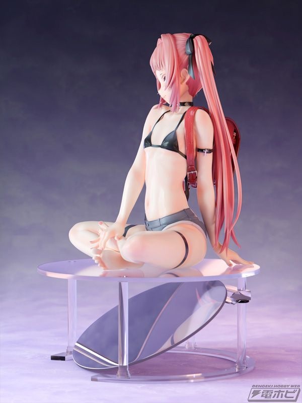 いたずらっぽい笑みを浮かべながら、挑発するような姿のメスガキちゃん・西宮あいを立体化! 「夏服ver.」の名の通り、黒いビキニトップとショートパンツ姿が、肌の明るさを引き立てつつ、大人ぶった挑発を感じさせます。また、本アイテムでは好みの角度に調節可能な特製の鏡面台座を採用。下からも横からも、新しい一面を楽しめる仕上がりとなっています。