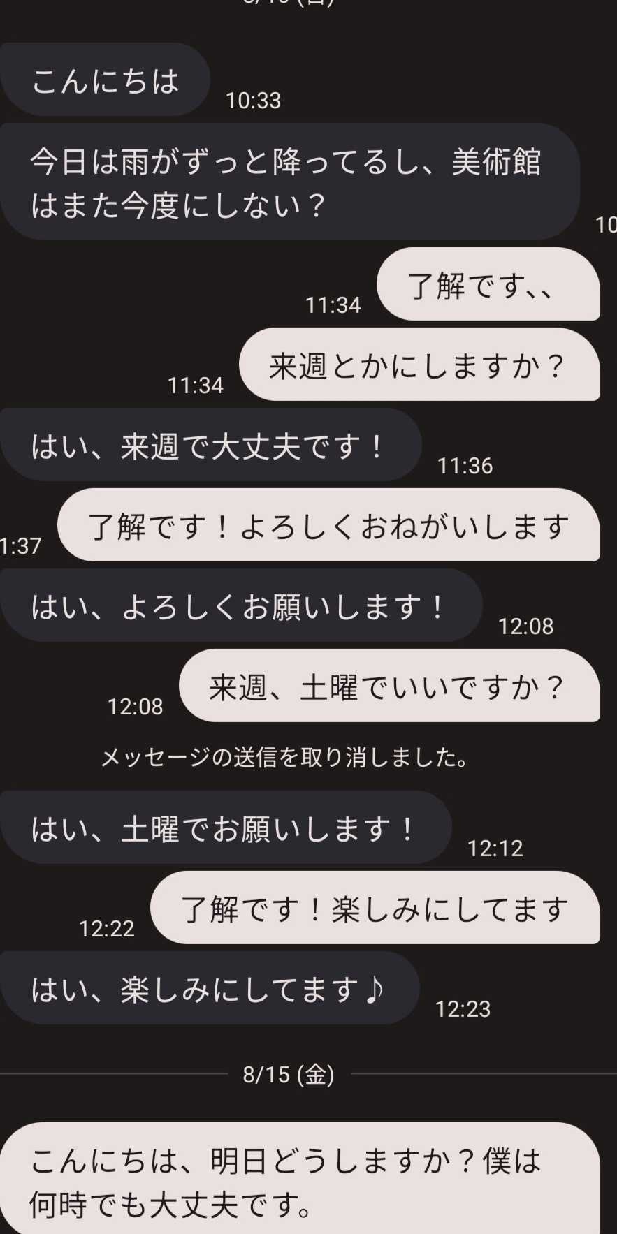 もう連絡来ないと割り切ってトークアプリで一人美術館レポ書いてヤバいヤツアピールしてほしい