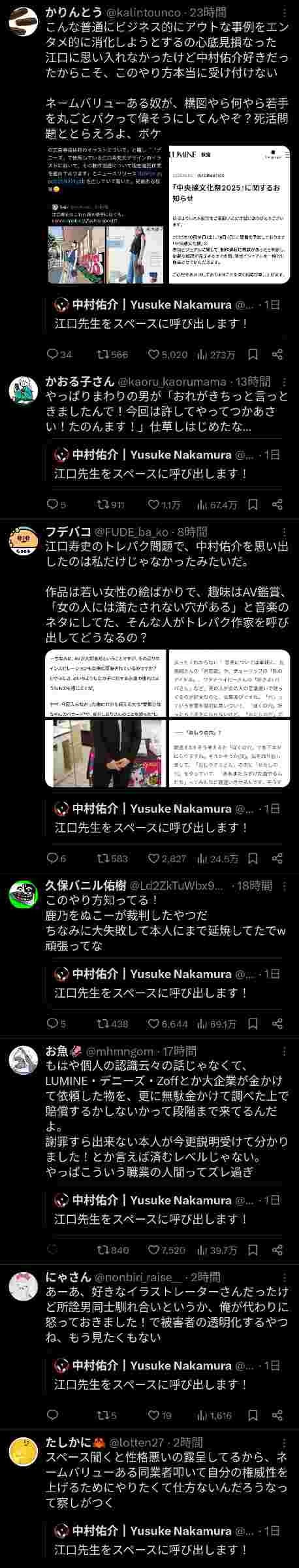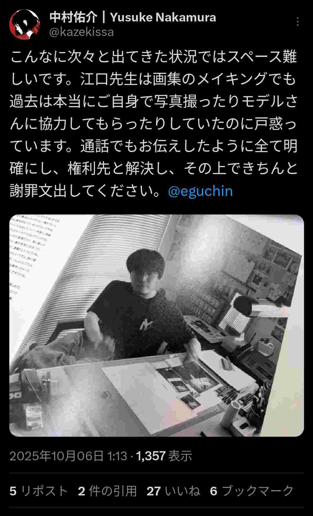 中村佑介、江口寿史を見放す「洗いざらい白状してきちんと謝罪しろ」www