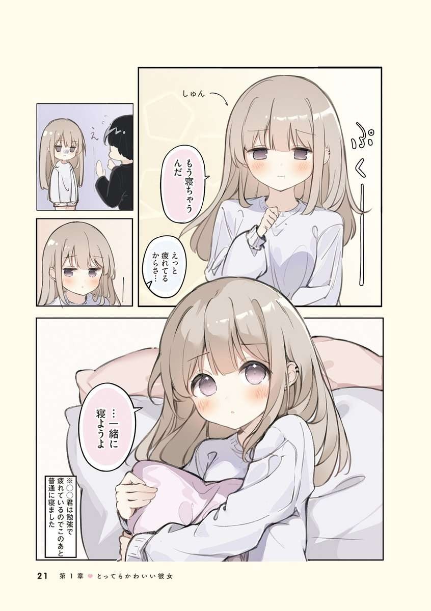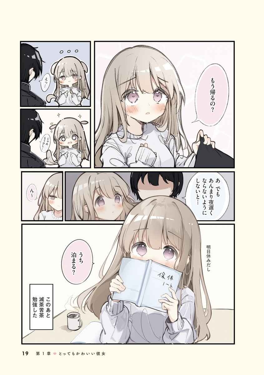 内容は、第1章「とっても可愛い彼女」、第2章「お似合いのキミに」、第3章「もっと大好きな彼女」、第4章「どんな日もキミといれば」、第5話「彼女ちゃん写真館」の章立てに加え、描き下ろし「前日譚」を収録し(もくじ)、オビ謳い文句は『僕の彼女は、とにかく可愛い!』、『二歳くらい年上で、あざとくて、少し恥ずかしがり屋で…』、『彼女との甘々な日常が描き下ろしエピソードを加えフルカラーで待望の書籍化!』で、裏表紙は『彼女との毎日は最高です?』だった。