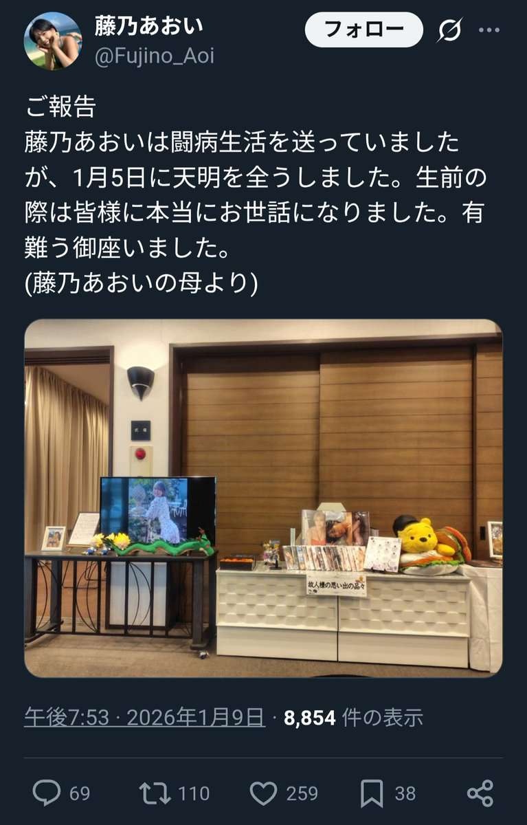 【記事全文】元グラドル藤乃あおいさんが死去、27歳 親族が発表 23年に希少がんを公表 闘病続けていた – スポニチ Sponichi Annex 芸能