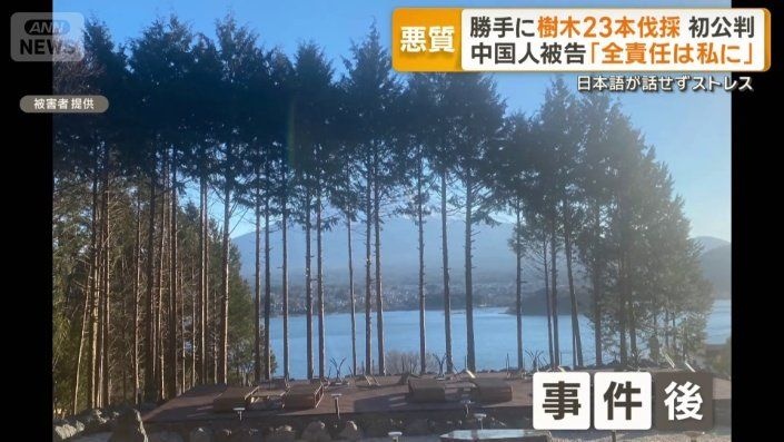 山梨県の河口湖で富士山の眺めを遮る樹木が、所有者に無断で伐採された事件です。