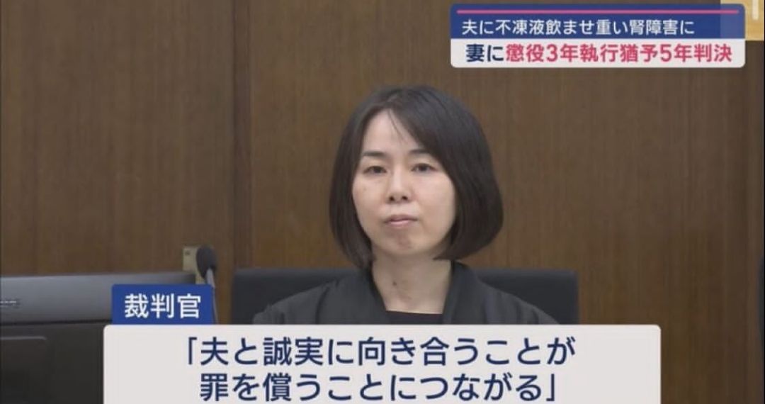 ことし2月、車などの凍結を防ぐための「不凍液」を飲食物に混ぜるなどして夫に摂取させ、腎臓に回復不能な重い後遺障害を負わせたとして傷害の罪に問われた44歳の看護助手に対し、静岡地方裁判所沼津支部は、30日、保護観察の付いた執行猶予の判決を言い渡しました。