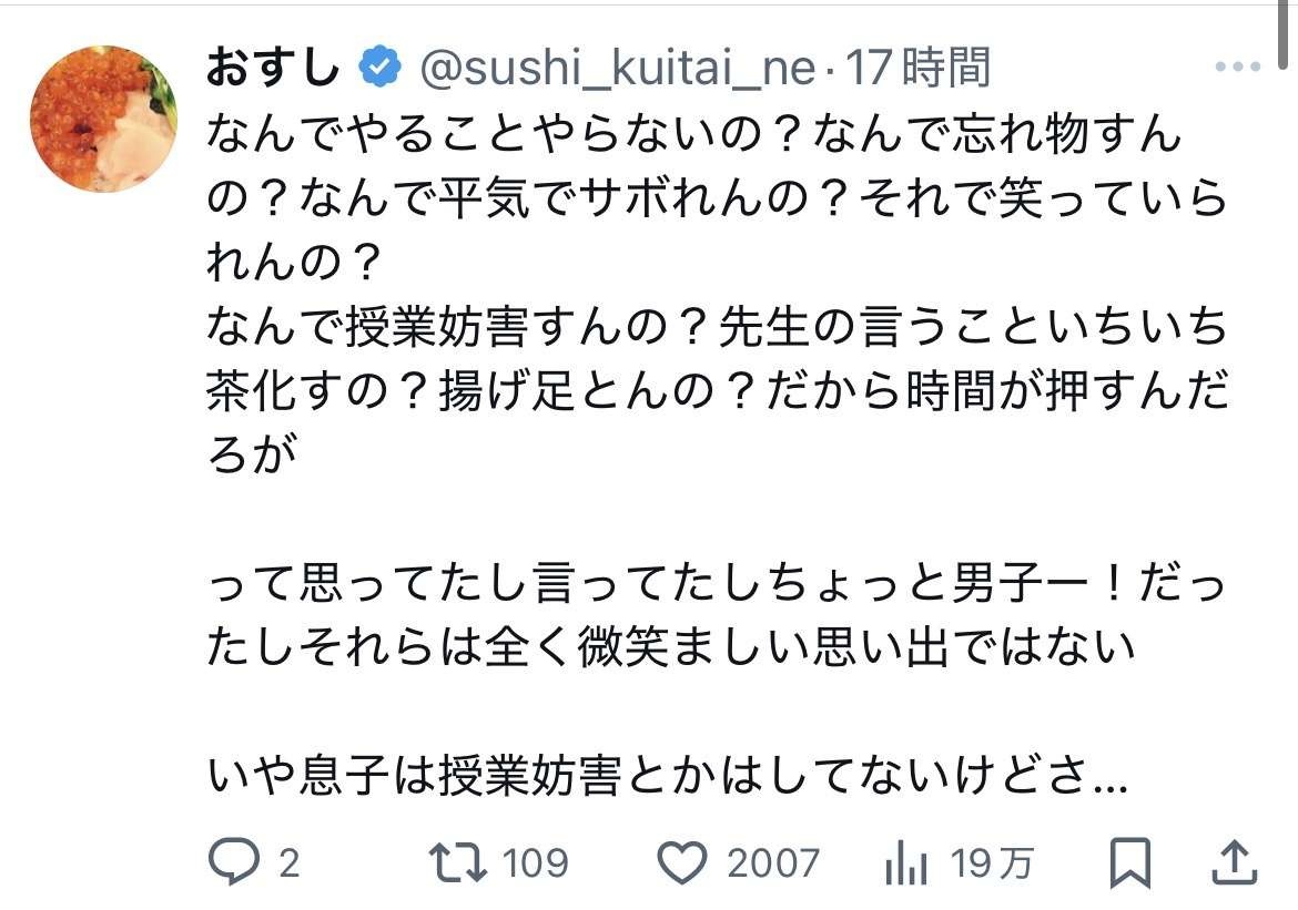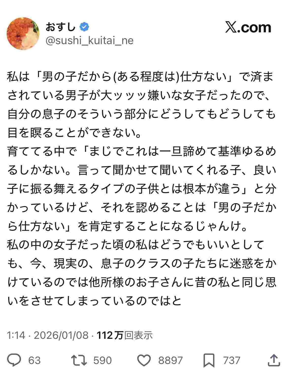 女さん「私は「男の子だから仕方ない」で済まされている男子が大ッ嫌いな女子だったので自分の息子にどうしても目を瞑ることができない」