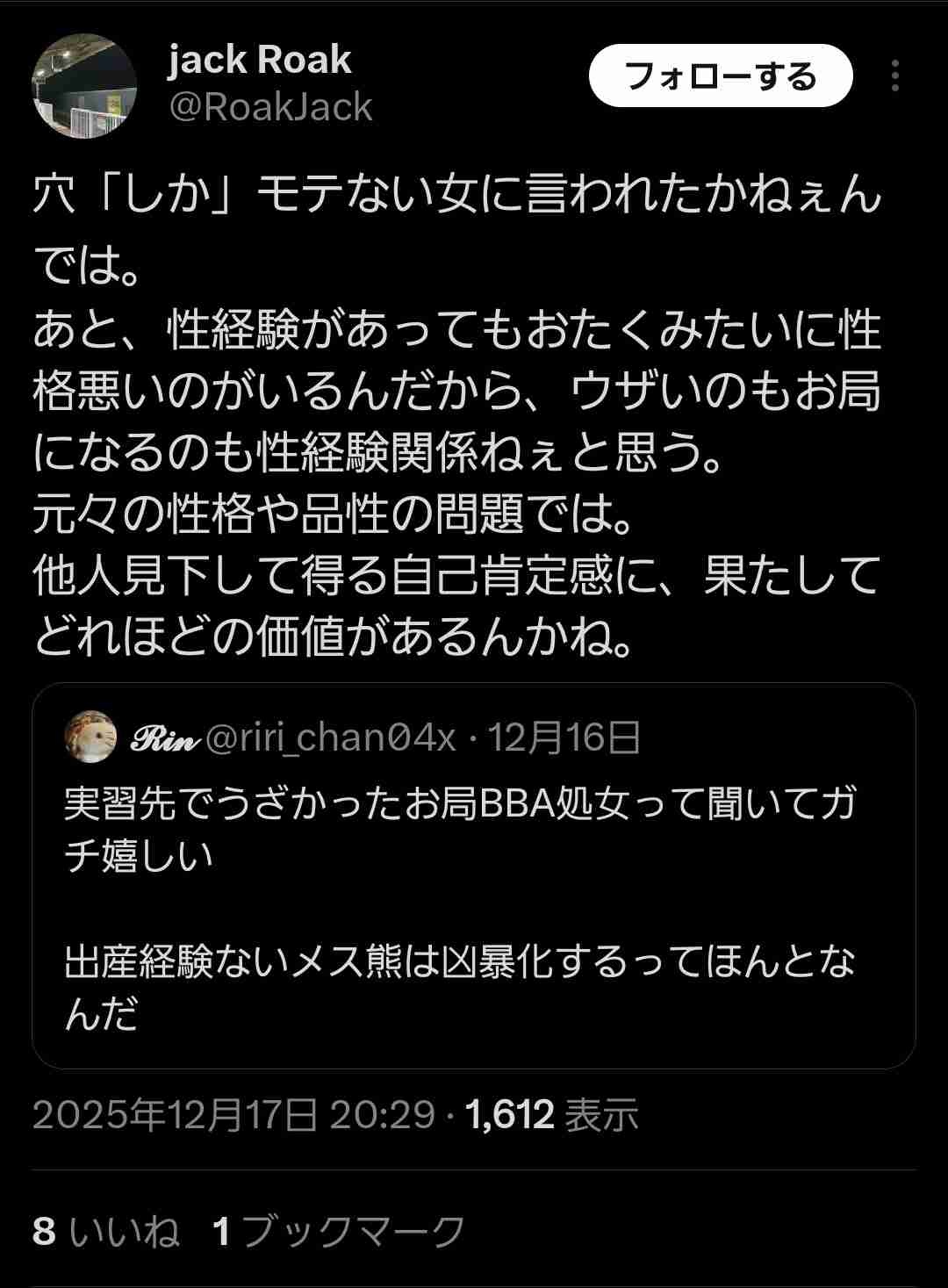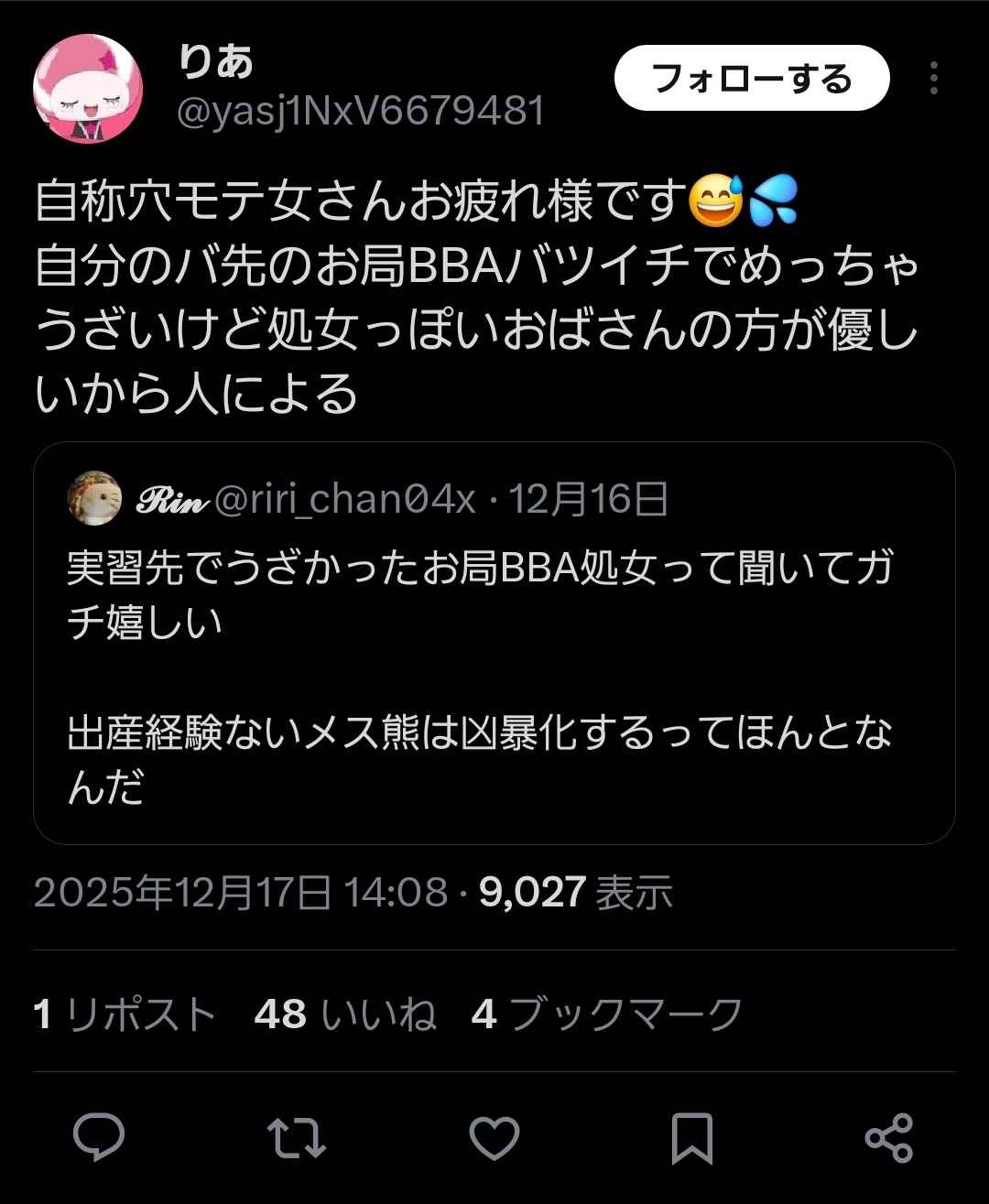 おい処女厨、お局BBA相手してやれよwww