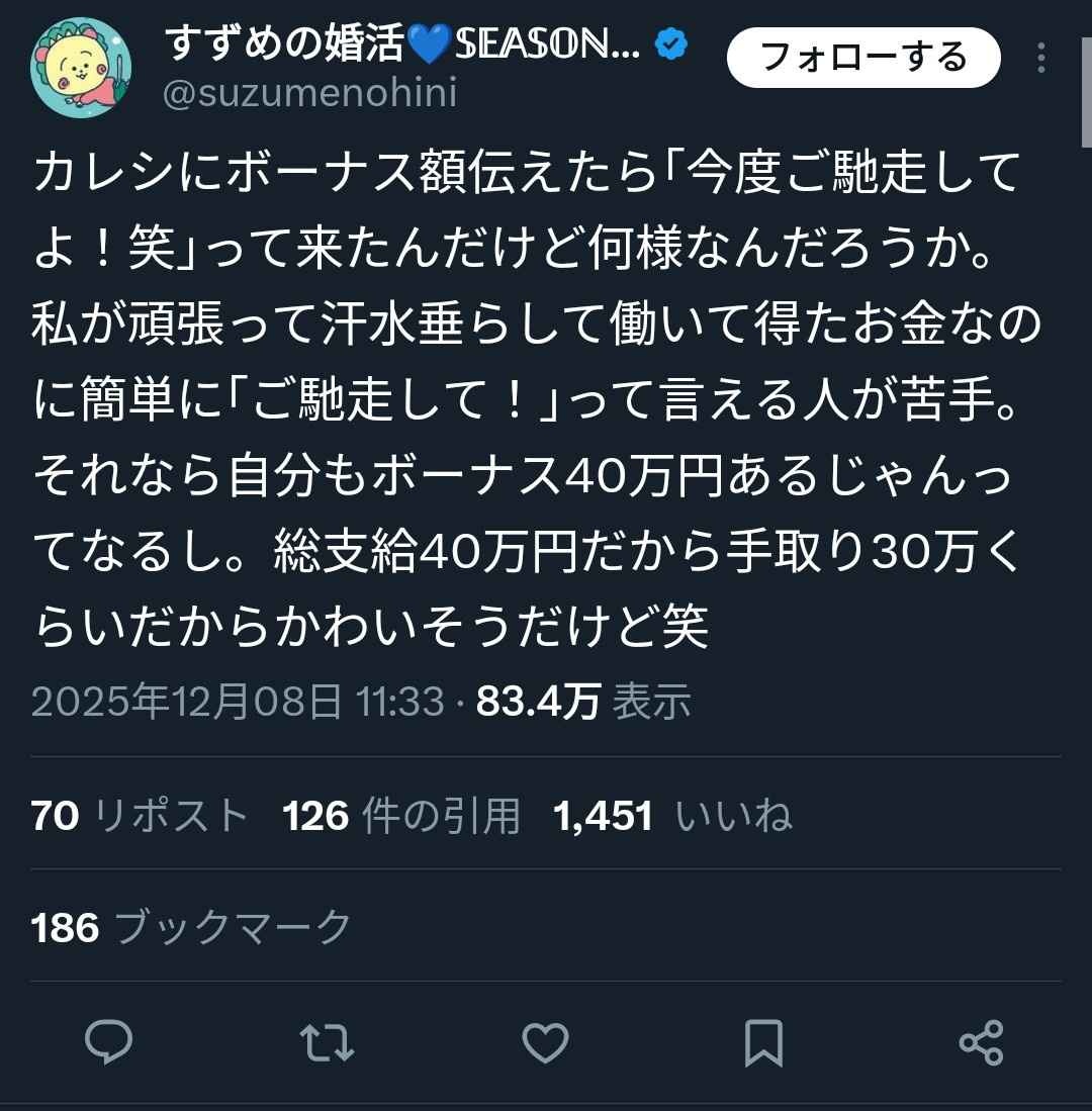 ボーナスいくら貰ったとか伝えるもんじゃないよ