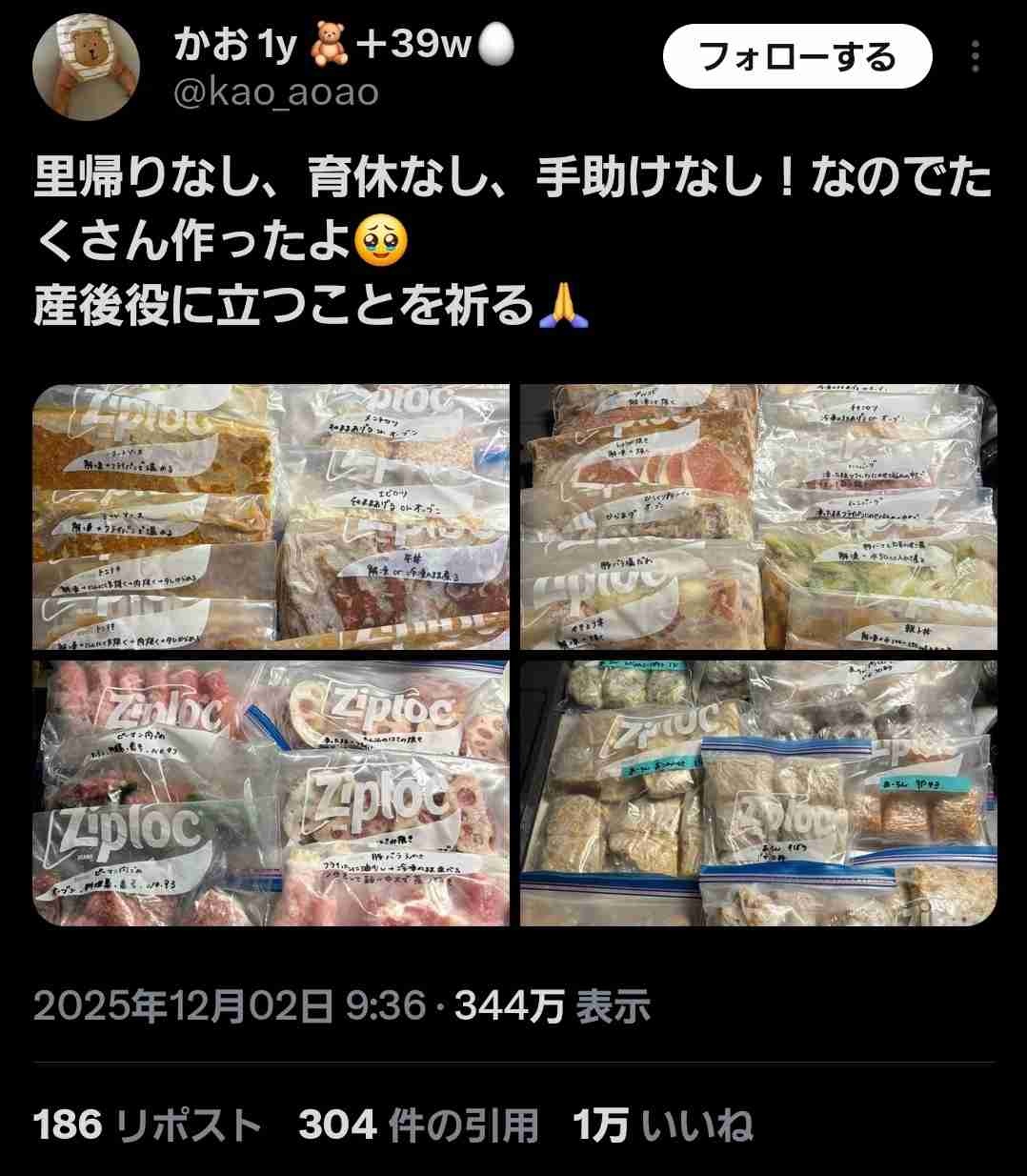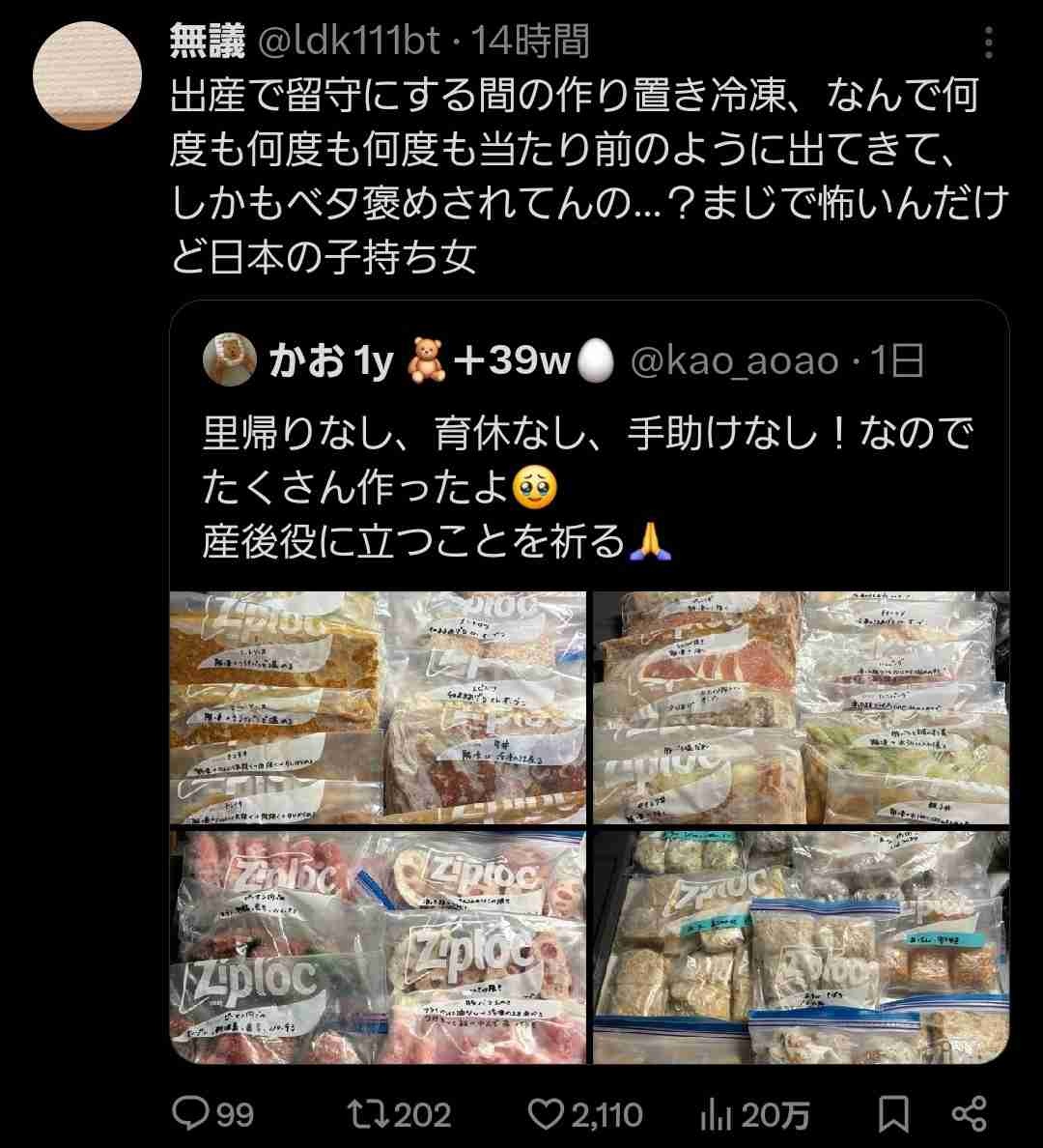前も炎上してたがX名物なんか妊婦の冷凍作り置き