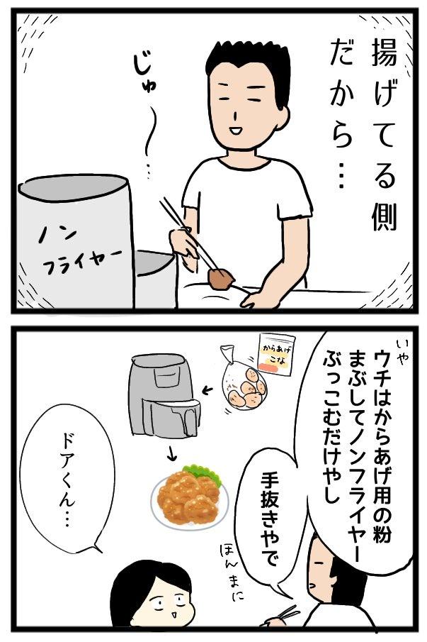 この漫画が言いたいのは「私の夫は料理してくれる理解ある夫です」「我が家はノンフライヤー持ってます」アピールや