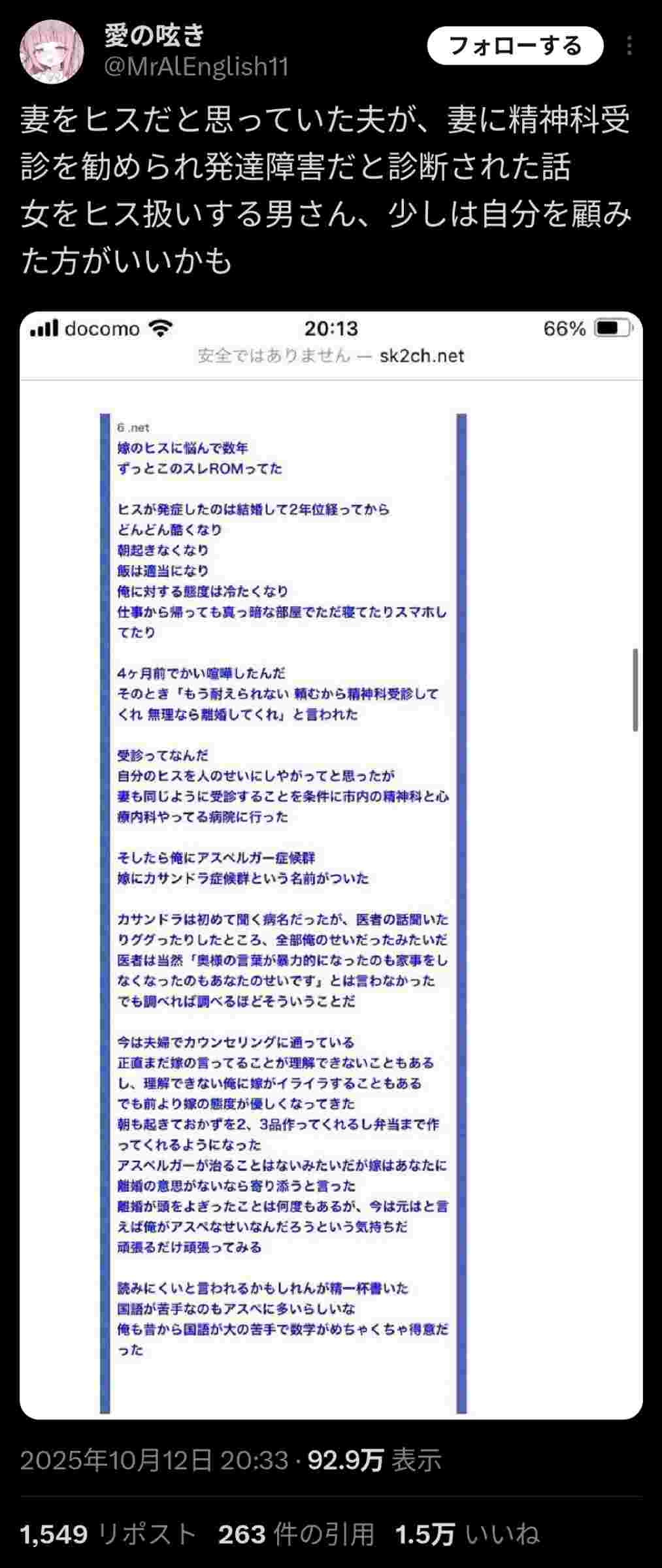 ただ夫はその辺切り離してるからカサンドラにはならない