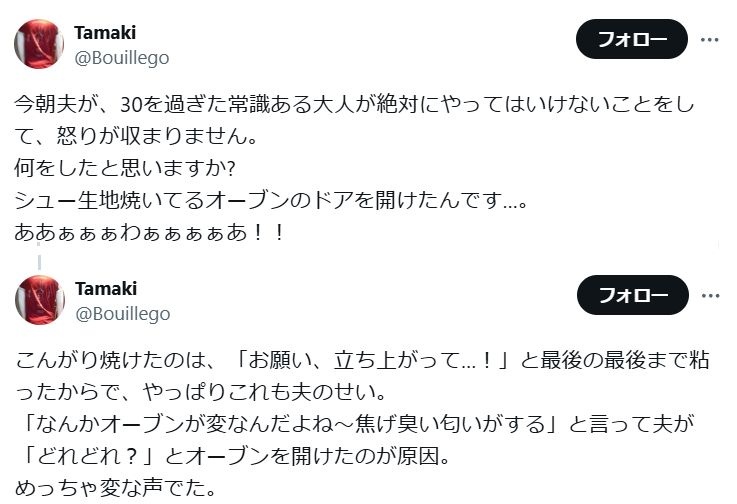 シュー焼くよりオーブンの異常の確認の方が大事だろ