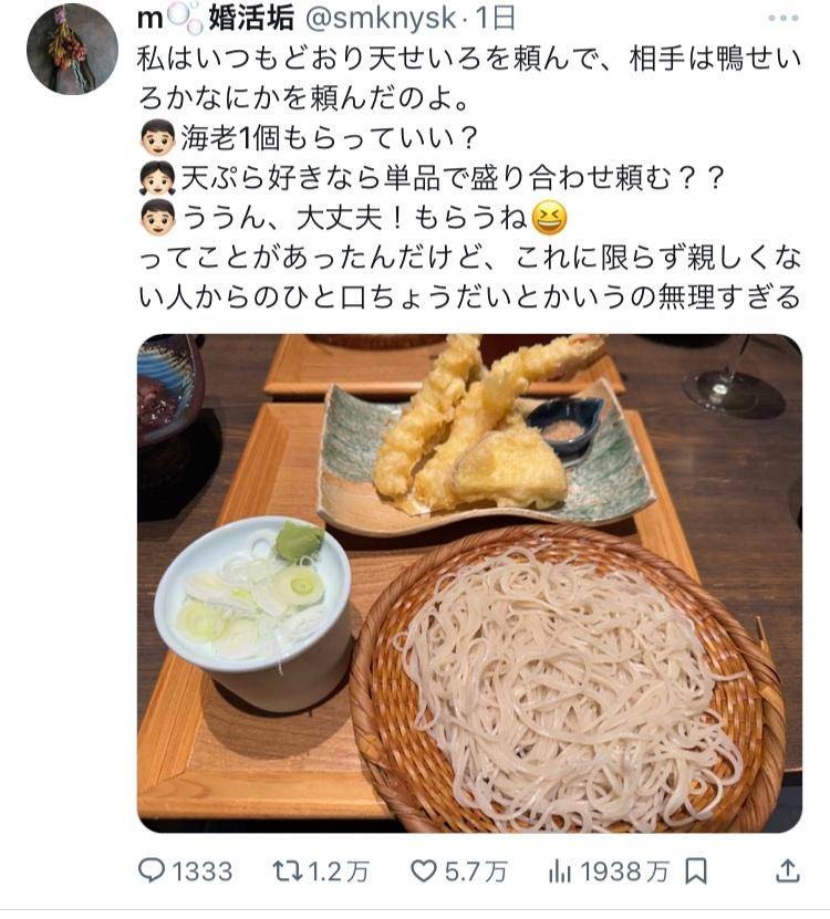 そもそも結婚考える相手と蕎麦屋行くなよ居酒屋で単品かコース頼んどけばこんな揉め事ないだろ