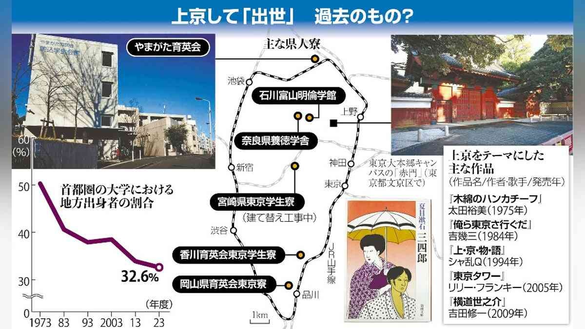 死にたいくらい憧れた「東京」も今は薄れた?…地方から首都圏大学への進学、23年度は32%どまり【読売新聞】 [New門]は、旬のニュースを記者が解き明かすコーナーです。今回のテーマは「首都圏に進学」。 そろそろ桜の便りが届く季節だ。新生活を始める若者の中には進学のため期待と不安を胸に上京する人もいるだろう。かつては地方から東www.yomiuri.co.jp