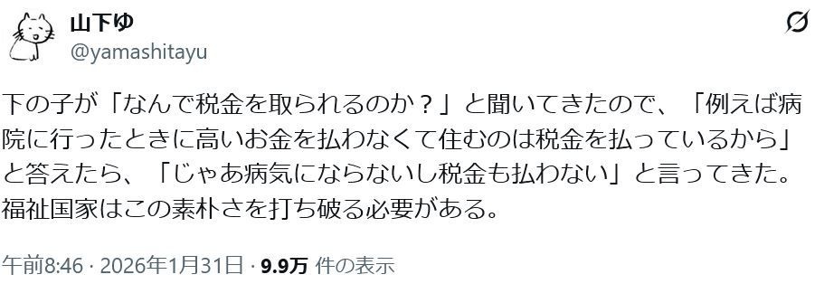 もしかしてだけど、道路や警察や消防車や小中学校がタダだと思ってる?
